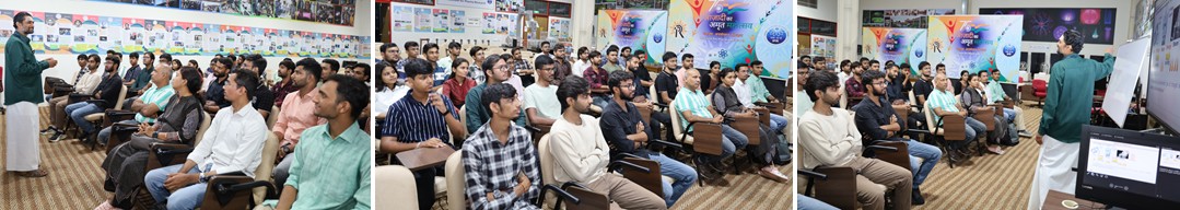 | 82 students of semister-5 Dn. A with 2 faculty members of Department of Electrical Engineering, Institute of Technology, Nirmal Universiy, Ahmedabad visited IPR on 7th August 2025. At IPR, these students and faculty were introduced to Basics of Plasma, Fusion, Tokamak and Other applications of Plasma by Mr. Gattu Ramesh Babu. Later, plasma based exibits at Outreach Hall were demonstrated to the visitors. Finally the visitors were enrouted via 132kV substation by Mr. Anand kumar and SST1 tokamak by Mr. Gattu Ramesh Babu in the tokamak hall. |