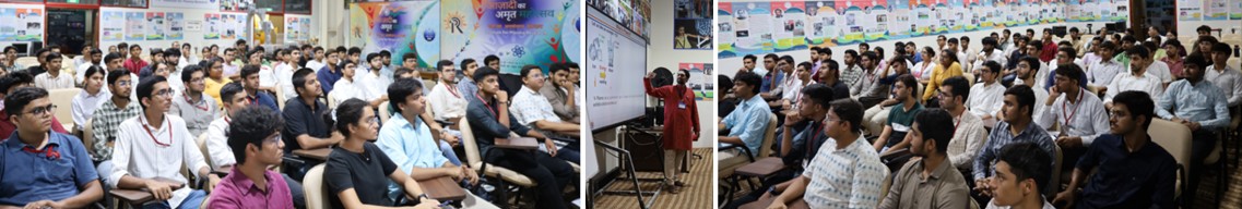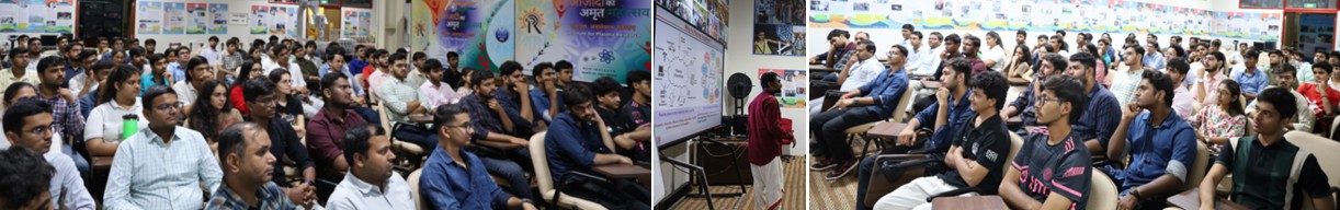 | 89 students of semister-1 with 2 faculty members of IT, UCP, Institute of Technology, Sardar Vallabhbhai Global University, Ahmedabad visited IPR on 8th August 2025. At IPR, these students and faculty were introduced to Basics of Plasma, Fusion, Tokamak and Other applications of Plasma by Mr. Gattu Ramesh Babu. Later, plasma based exibits at Outreach Hall were demonstrated to the visitors. SST1 tokamak was briefed in the tokamak hall. |