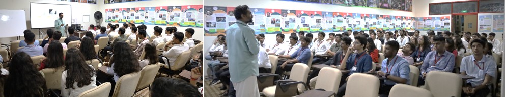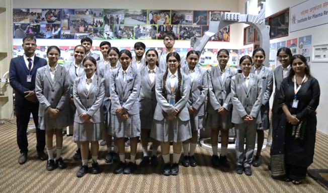 | 18 students of class 11th and 12th CBSE Board with 2 faculty members of GEMS Genesis International School, Ahmedabad visited IPR on 19th August 2025. At IPR, these students and faculty were introduced to Basics of Plasma, Fusion, Tokamak and Other applications of Plasma by Mr. Gattu Ramesh Babu. Later, plasma based exibits at Outreach Hall were demonstrated to the visitors.  |