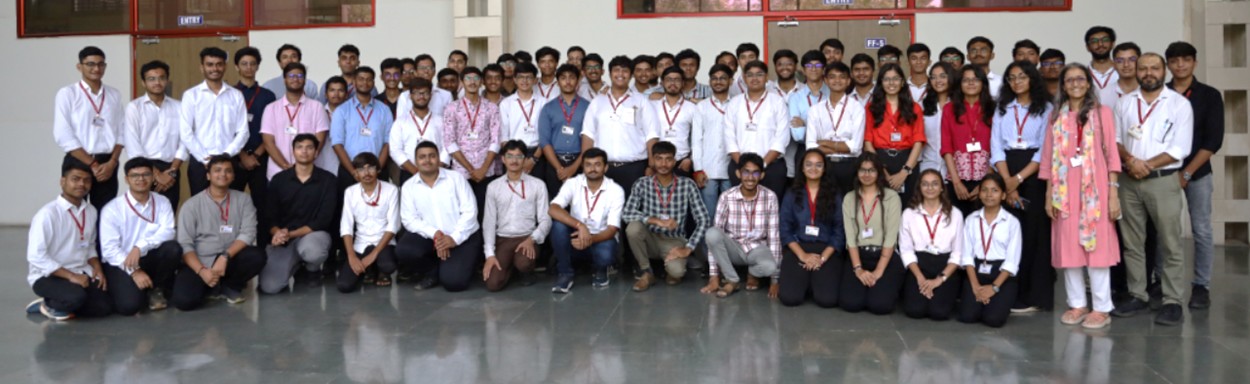 | 84 students of semister-5 Dn. B with 2 faculty members of Department of Electrical Engineering, Institute of Technology, Nirmal Universiy, Ahmedabad visited IPR on 6th August 2025. At IPR, these students and faculty were introduced to Basics of Plasma, Fusion, Tokamak and Other applications of Plasma by Mr. Gattu Ramesh Babu. Later, plasma based exibits at Outreach Hall were demonstrated by Outreach division members to the visitors. SST1 tokamak was briefed by Mr. Rahul Vishwakrma in the tokamak hall. |