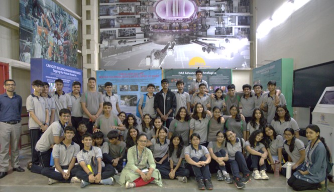 | 51 students of class 11th & 12th IC Board with 3 faculty members of GEMS Genesis International School, Ahmedabad visited IPR on 18th August 2025. At IPR, these students and faculty were introduced to Basics of Plasma, Fusion, Tokamak and Other applications of Plasma by Mr. Gattu Ramesh Babu. Later, plasma based exibits at Outreach Hall were demonstrated to the visitors. SST1 tokamak was briefed in the tokamak hall. |