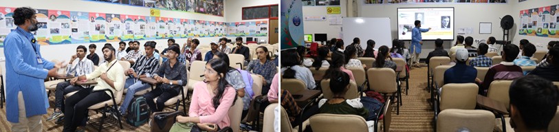 | 34 students of semister-3 and 5 with 2 faculty members of B.Sc. & M.Sc. (Maths & Chem.), HVHP Institute of Post Graduate Studies and Research, Kadi Sarva Vidyalaya Campus, Kadi and P.S., Science & H.D. Patel Arts College, Kadi visited IPR on 14th October 2025. At IPR, these students and faculty were introduced to Basics of Plasma, Fusion, Tokamak and Other applications of Plasma by Mr. Gattu Rameshbau. Later, plasma based exibits at Outreach Hall were demonstrated by Outreach division members to the visitors. Finally the visitors were briefed about  SST1 tokamak  by  Mr. Gattu Ramesh in the tokamak hall. |