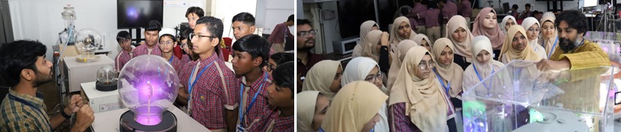 | 50 students with 6 faculty members of Class 8th to 10th, Scientist Academy, Juhapura, Ahmedabad visited IPR on 16th October 2025. At IPR, these students and faculty were introduced to Basics of Plasma, Fusion, Tokamak and Other applications of Plasma by Mr. Gattu Rameshbau. Later, plasma based exibits at Outreach Hall were demonstrated by Outreach division members to the visitors. Finally the visitors were briefed about  SST1 tokamak  by  Mr. Gattu Ramesh in the tokamak hall. |