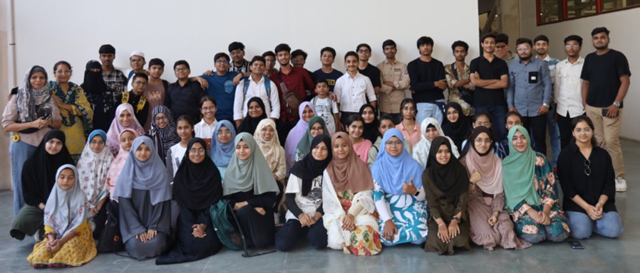 | 50 students with 6 faculty members of Class 8th to 10th, Gulshan-E-Maher Gujarati Secondary School, Ahmedabad visited IPR on 15th October 2025. At IPR, these students and faculty were introduced to Basics of Plasma, Fusion, Tokamak and Other applications of Plasma by Mr. Gattu Rameshbau. Later, plasma based exibits at Outreach Hall were demonstrated by Outreach division members to the visitors. Finally the visitors were briefed about  SST1 tokamak  by  Mr. Gattu Ramesh in the tokamak hall. |
