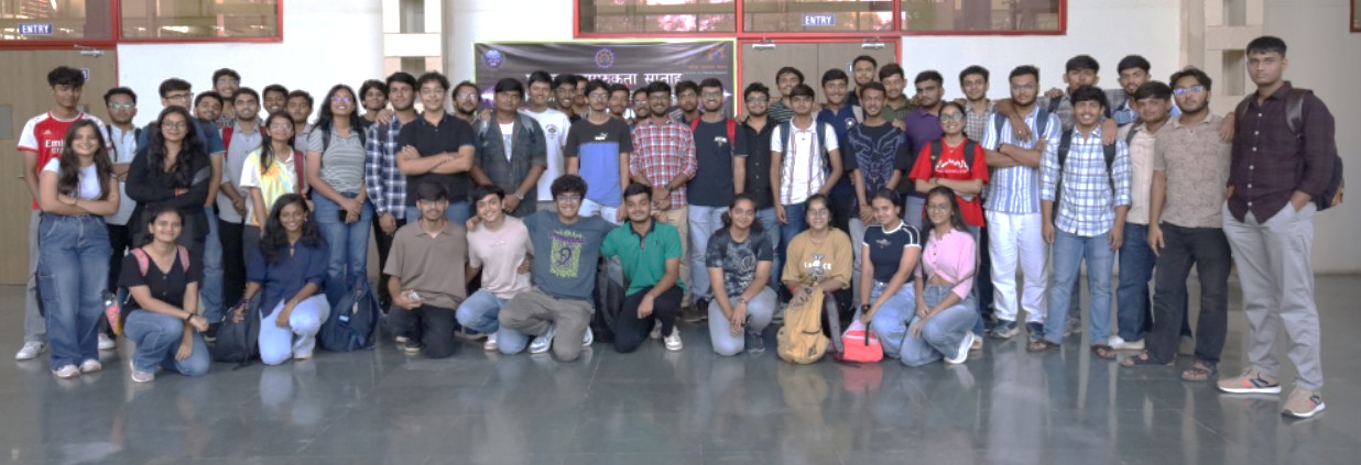 71 students of Sem.3, ECE Dept., Dn.C with 2 faculty members of Nirma University, Ahmedabad visited IPR on 4th September 2025. At IPR, these students and faculty were introduced to Basics of Plasma, Fusion, Tokamak and Other applications of Plasma by Mr. Gattu Ramesh Babu. Later, plasma based exibits at Outreach Hall were demonstrated by Outreach division members to the visitors. Finally the visitors were briefed about SST1 tokamak by Mr. Gattu Ramesh in the tokamak hall.