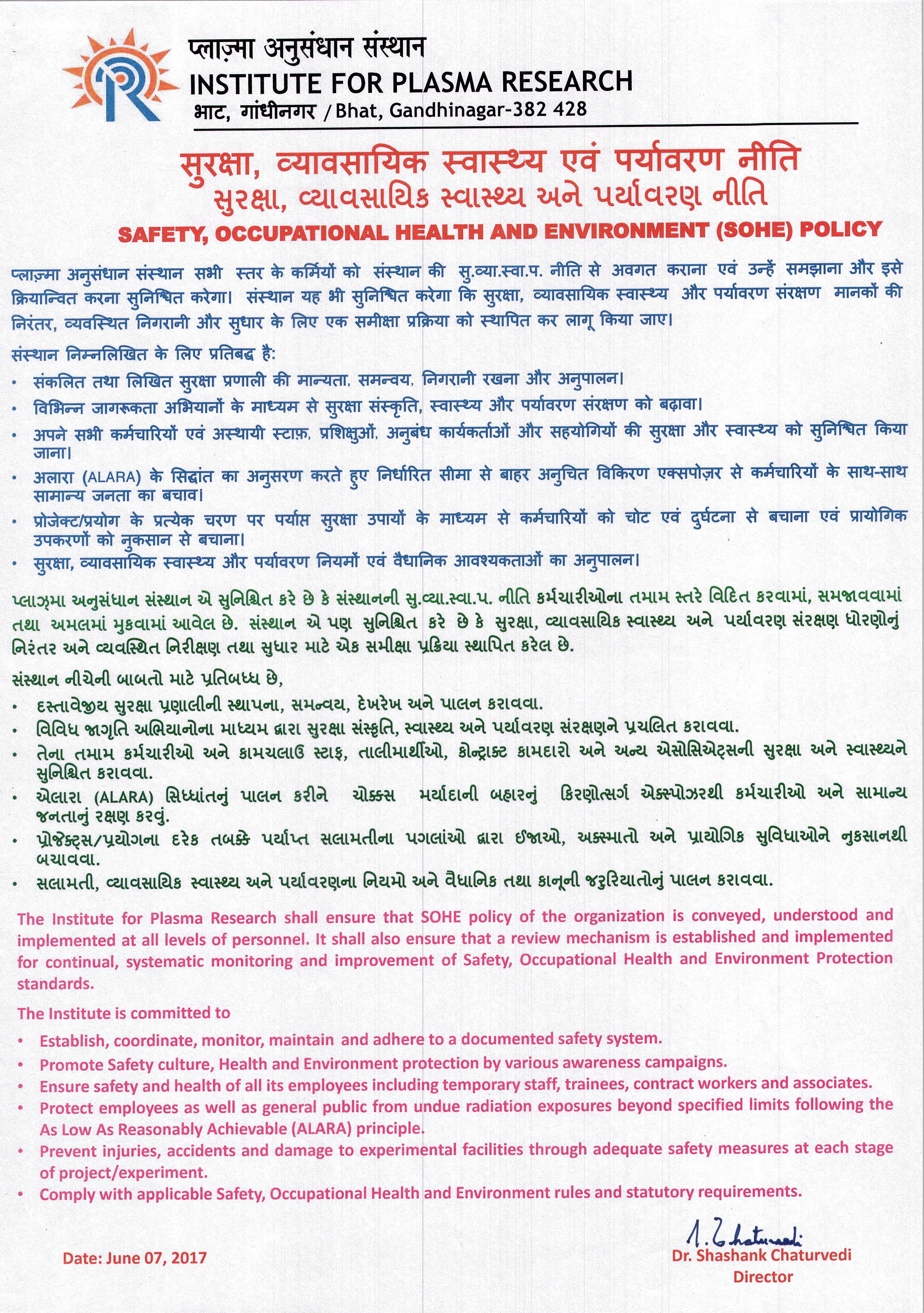 SAFETY, OCCUPATIONAL HEALTH AND ENVIRONMENT (SOHE) POLICY